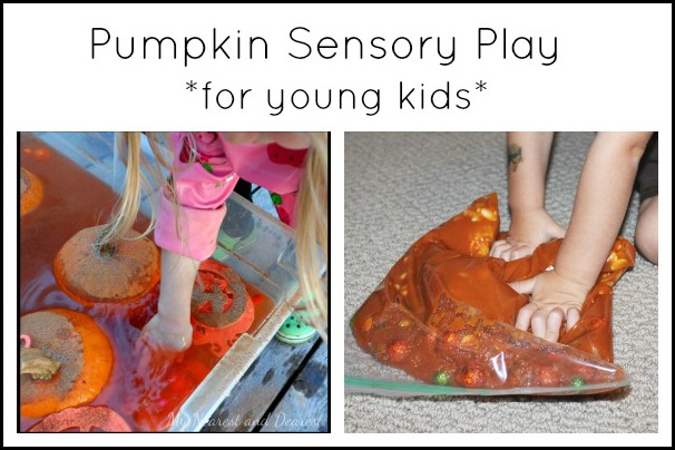 Next up- sensory play! Here are some fun ways to explore pumpkins with the five senses.