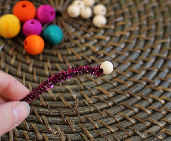 *Also pictured is some thin bead cord- older kids or adults can use this instead of pipe cleaners for a more natural look- younger kids will have more success with the pipe cleaners.