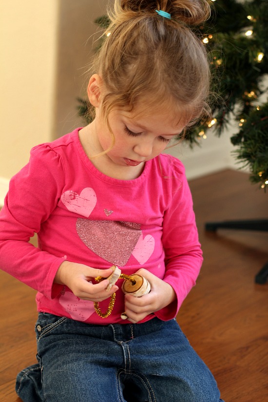 Or, you can do like us and let the kiddos do the threading. My daughter (almost three) did these two today: