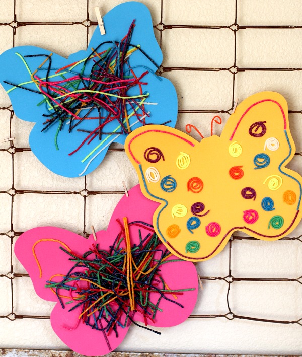 Although the twins’ butterflies may look like a jumble to you, I see a riot of color and texture and the hard work of my kiddos as their little fingers worked to get all the strands “just so.”
