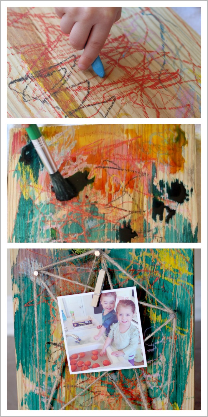 Love the wood idea! I bet your kids thought it was pretty cool to work on wood and be able to just go to town scribbling and painting all over it. And that you turned it into something you can keep out- very cool!