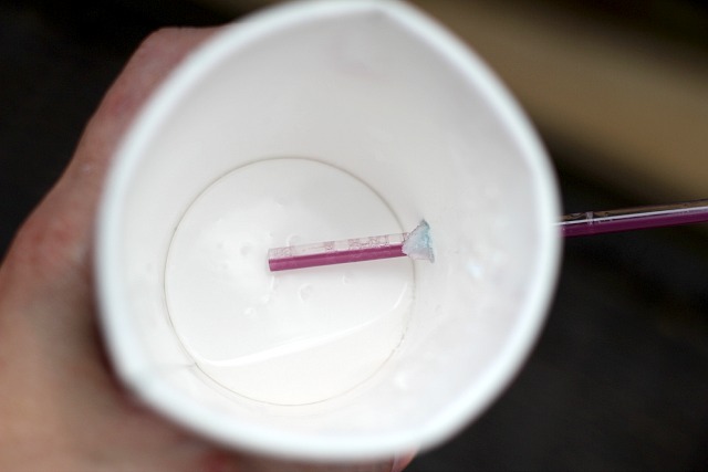 To test out your pipe, fill the cup with bubble solution until your straw is covered.