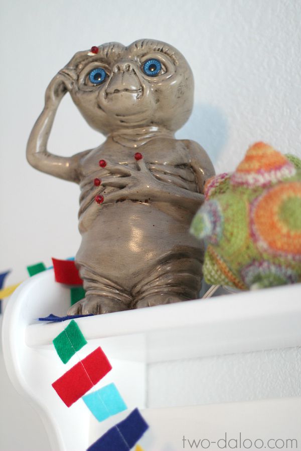 This is one that we struggle with in the kids’ bedroom and playroom- with only one window each, they can seem rather cave-like if we aren’t careful. Although we don’t have the beautiful floor-to-ceiling windows of Reggio Emilia classrooms, I’m doing my best to work with what we do have. White walls, mirrors, and creative use of lamps and other light sources are helping us keep the rooms as light, bright, and airy as possible. I’ve been looking at lots of Nordic kids’ room photos for inspiration. Below, the old E.T. nightlight I had as a child pops against a simple white wall.