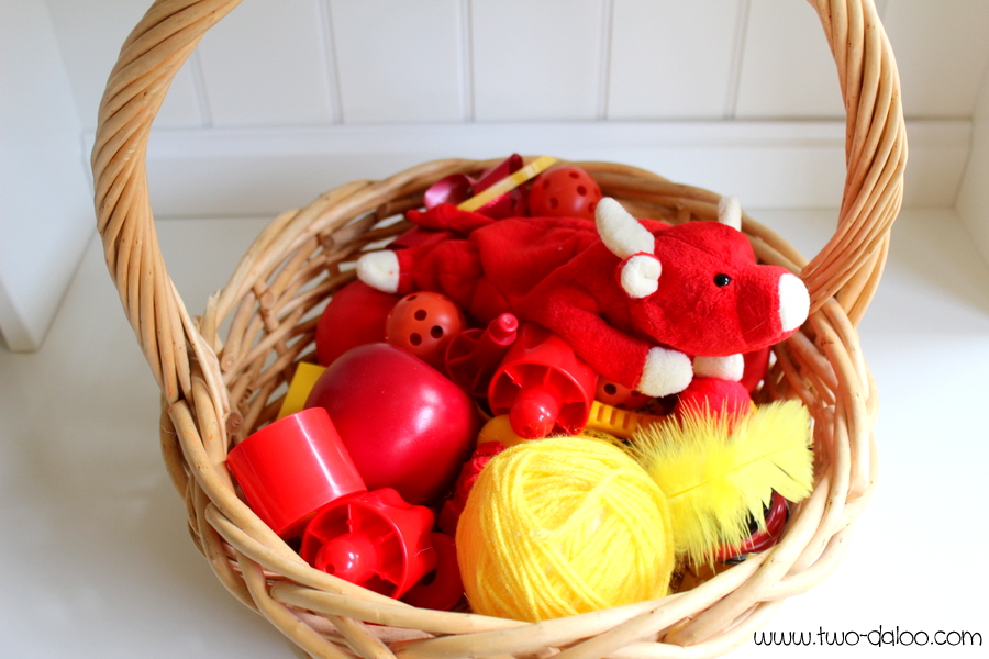 When the monsters were done, I ran around the house with a basket and collected an array of red and yellow objects.